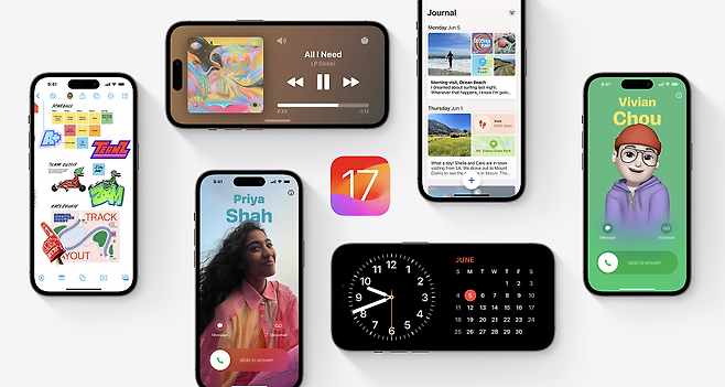 먼저 아이폰OS인 iOS17 버전의 경우 연락처를 꾸밀 수 있는 연락처 카드와 이러한 연락처를 교환할 수 있는 네임 드랍, 충전할 때 사용할 수 있는 대기 모드, 메시지를 재미있게 할 수 있는 스티커 기능과 메시지 검색 강화, 음성 메시지 문자 변환 그리고 페이스타임 메시지와 특수효과, 음성 사서함 문자 전환 그리고 올 하반기 추가되는 일기 기능 등이 주요 변화라고 할 수 있었습니다.