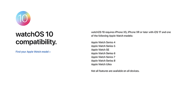 이처럼 애플워치 watchOS10 버전은 애플워치 시리즈4, SE 모델부터 사용할 수 있습니다. 다른 OS들과 달리 애플워치 OS의 경우 이번 버전과 동일한 모델들을 지원하기 때문에 기존 모델들을 사용하시는 분들은 모두 가을 정식 버전으로 업데이트하실 수 있습니다.