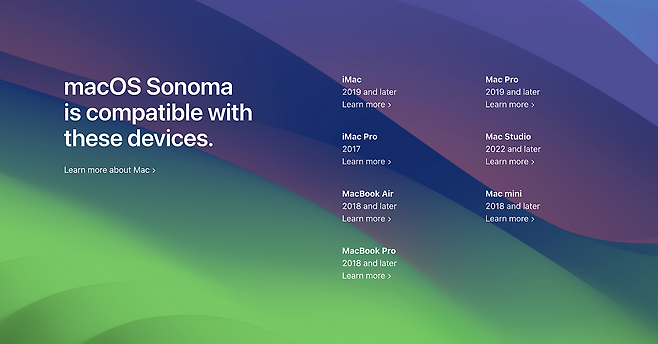 지원 모델은 아이맥 2019년 이후 모델, 아이맥 프로, 맥북에어 2018년 이후 모델, 맥북프로, 2018년 이후 모델, 맥프로 2019년 이후 모델, 맥 스튜디오, 맥미니 2018년 이후 모델입니다. 애플 실리콘 모델은 물론이고 인텔 맥들도 지원되고 있지만 일부 2017년 출시 모델은 지원 대상에서 제외되었습니다.