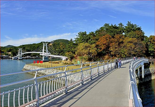이렇게 둘러보시면 좋습니다 망덕포구 → 별 헤는 다리 → 배알도 섬 정원 산책 →타포니 바위 → 둘레길 일주 → 해운정 → 해맞이 다리 하산이 순서로 천천히 걸으면 사진 촬영 포함 1시간~1시간 30분 정도가 적당합니다. 늦가을에는 바람이 불 수 있으니 가벼운 겉옷을 준비하시면 좋겠습니다.