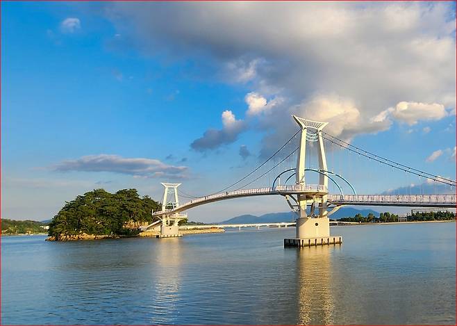 한때 배알도는 새들만 드나들던 작은 무인도에 가까운 섬이었습니다. 그러나 해맞이 다리와 별 헤는 다리, 두 개의 해상보도교가 놓이면서 이제는 누구나 편하게 걸어 들어갈 수 있는 섬이 되었습니다. 특히 별 헤는 다리는 망덕포구에 있는 정병욱 가옥과 윤동주 시인의 유고 ‘하늘과 바람과 별과 시’에서 이름을 따온 다리입니다.