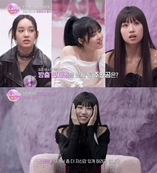 이미 완성형 기량을 선보인 참가자부터 부족한 능력치를 드러낸 연습생 등이 고르게 섞여 있는 <아이랜드2> 첫 번째 관문을 통과한 주인공은 총 16명에 달했다. 정원이 12명인 관계로 4명은 그라운드로 내려갈 수밖에 없었다. 먼저 심사위원 선정 1위에 오른 인물은 방출 면제권과 더불어 다양한 베네핏을 얻게 되었는데 그 주인공은 역시 최정은 연습생이었다.