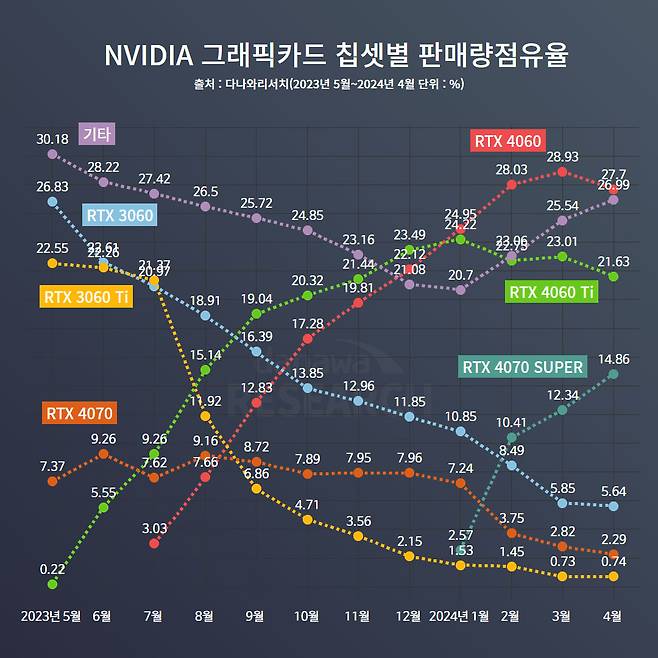 RTX 4070 SUPER 그래픽카드 판매량 점유율 Top 4