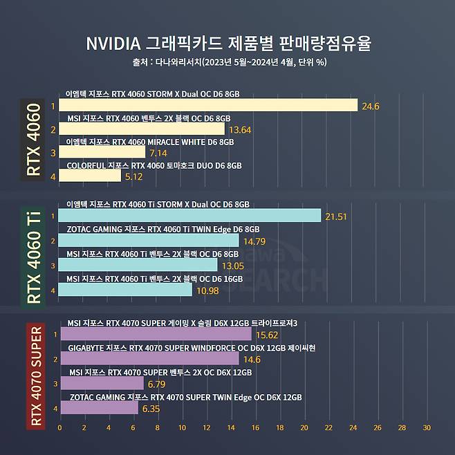 RTX 4070 SUPER 그래픽카드 판매량 점유율 Top 4