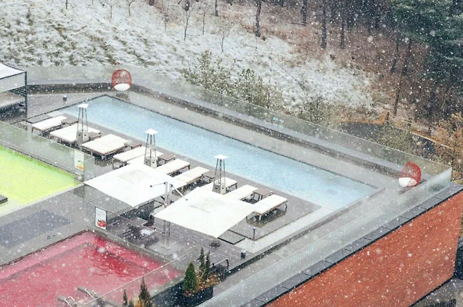 덕유산 중턱에 위치한 무주 덕유산 리조트 세솔동 야외노천탕은 삿포로의 겨울 온천이 부럽지 않은 멋진 설경을 자랑해요. 노천탕 주변의 소나무 숲이 겨울 풍경과 잘 어우러져, 탕 속에 몸을 담그고 있으면 마치 자연의 일부가 된 듯한 기분을 느낄 수 있답니다. 바로 옆에는 슬로프가 있어 스키를 즐긴 후 따뜻한 온천에 몸을 녹이며 하루를 마무리하기에도 제격이에요. 부모님께 덕유산의 눈꽃과 따뜻한 온천을 동시에 보여드리고 싶다면 이곳을 추천드려요.