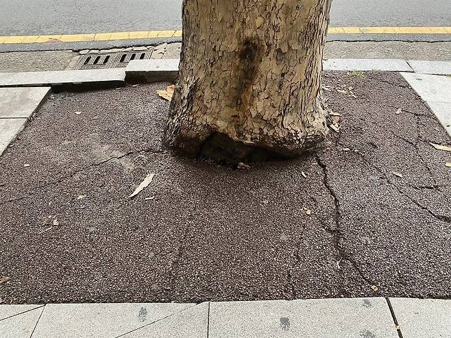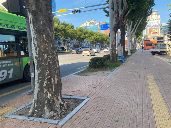 대구 중구 가로수는 나무 주변까지 모두 콘크리트로 덮여 있었다.