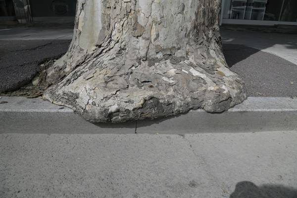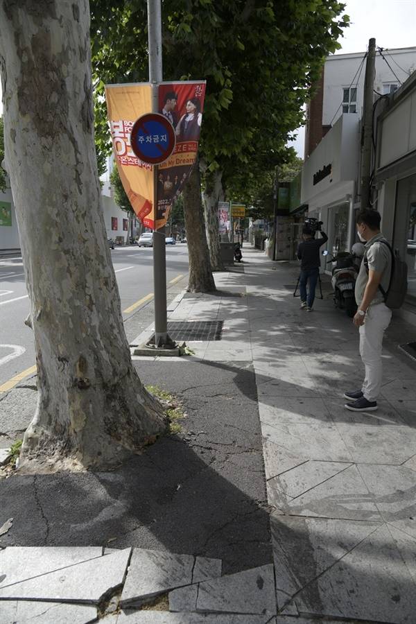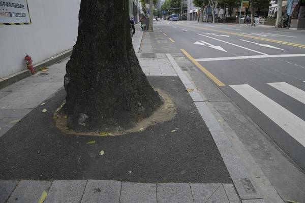 | ▲ 콘크리트 밖으로 나온 가로수 모습. 어떻게 이 모양으로 가로수를 관리할 수 있을까? |
