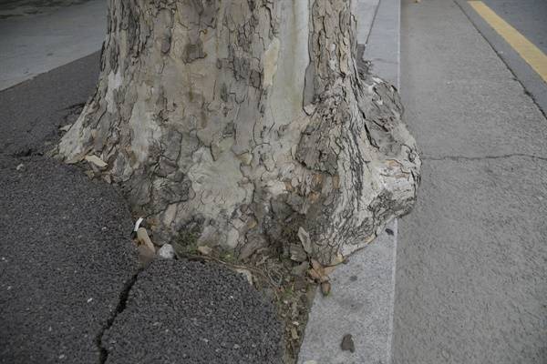 | ▲ 뿌리가 전체적으로 콘크리트로 덮여 있는 가로수들. 도대체 어떻게 살란 말인가? |