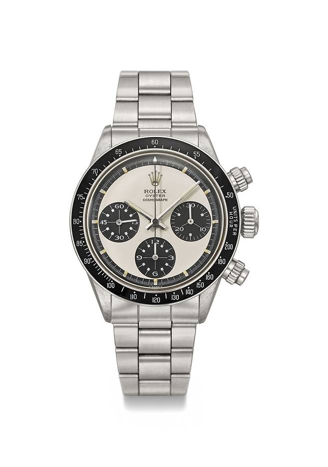 폴 뉴먼의 첫 데이토나(Ref. 6239)는 2017년 10월, 뉴욕 필립스 경매에서 1,775만 2,500달러에(약 240억 원) 낙찰되며 빈티지 손목시계 최고 낙찰가를 경신하기도 했다. 폴 뉴먼이 소유하고 착용했던 데이토나는 두 점이 더 경매에 출품되었는데, 그 중 하나는 1995년 데이토나 24시에서 폴 뉴먼이 우승 부상으로 받은 시계(Ref. 16520)로 'Rolex at Daytona 24 Paul Newman Rolex'이라 새겨져 있고, 다른 하나는 2006년 부인에게서 받은 시계(Ref. 116519)로으로 'Drive Very Slowly Joanne'이라 새겨져 있다.