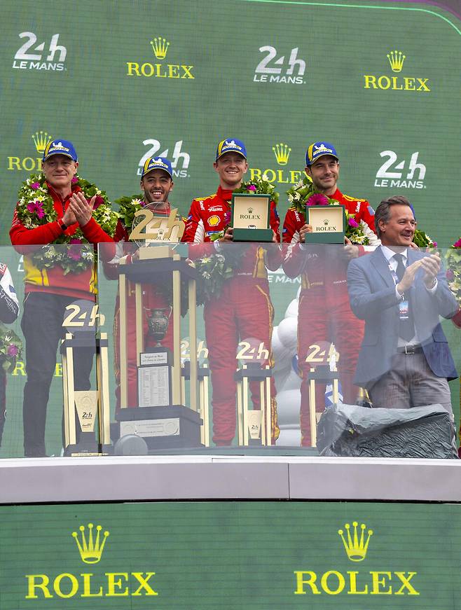 레이스가 시작되는 오후 4시, 정확히 절반의 레이스가 진행된 새벽 4시, 레이스가 종료되는 그 다음날 오후 4시는 르망24시 같은 내구레이스에서 큰 상징성을 갖는다. 녹색 배경과 왕관으로 수놓인 경기장, 모든 관중과 관계자들의 시선이 시계에 집중되는 그 순간의 숨은 주인공은 다름아닌 롤렉스다.