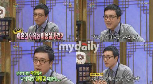 "전부인 이미연이 지난해 출연했던 '무릎팍 도사'의 방송분은 보지 않았냐."는 강호동의 질문에 김승우는 "방송은 보지 못했다. 나중에 기사로만 봤다."며 "그 친구(이미연)가 출연당시 말을 잘했다."고 답했다.