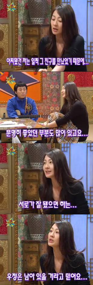 이미연은 "나는 너무 일찍 그를 만났다. 만약 그 사람을 미워하면 내 20대가 사리질 것만 같다"며 "좋은 이야기만 하고 싶고 서로 좋았던 부분만 남아 있다. 내 마음 속이나 그 사람 마음 속에 서로가 잘됐으면 하는 바람이 있다"고 말했다.