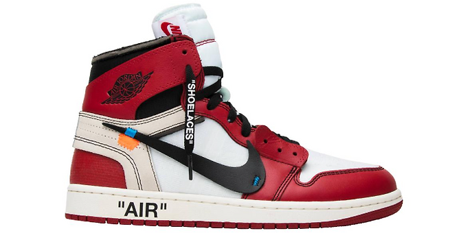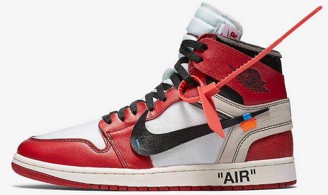 루이비통 남성복 디렉터 출신이자 스트릿 브랜드 오프화이트를 만든 세계적인 디자이너 버질 아블로와 나이키가 협업한 운동화로 나이키의 대표 모델인 조던 1 OG 시카고 1985를 버질 아블로만의 감성으로 재해석했다.