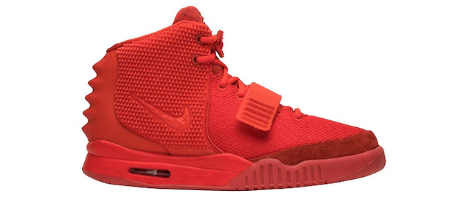 영화 ‘백 투더 퓨처 2’에서 나왔던 미래형 운동화의 디자인을 현대적으로 재해석해 어퍼부터 아웃솔까지 빨간색으로 과감하게 디자인했다. 칸예 웨스트와 나이키의 도전적인 시도가 엿보이는 운동화이다.