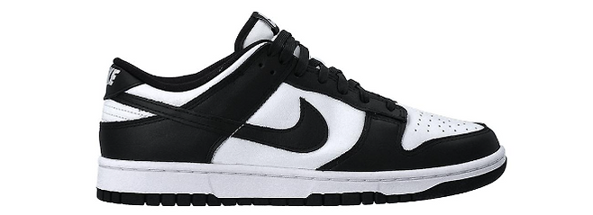 나이키 덩크 로우 레트로 블랙이라는 이름보다 범고래라고 불리는 나이키 운동화로 현재 가장 대중적으로 유행하고 있다. 블랙과 화이트라는 실패하기 어려운 색상 조합으로 남녀노소 누구나 소화할 수 있는 디자인이다. 한때 리셀 가격이 발매가 3배 이상으로 치솟았지만 지금은 합리적인 가격대까지 떨어졌다.