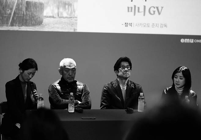 이후 장성란 영화 저널리스트의 안정적인 진행 아래 상영관을 가득 채운 관객들의 열띤 질문들이 이어졌는데, "똥의 직접적인 묘사로 인한 그로테스크함을 피하고자 흑백 영화를 찍었냐고 묻는 질문을 많이 받았다. 오히려 순서는 그 반대다. 언젠가 흑백 영화를 만들고 싶다고 생각했고, 이번에 하라다 미츠오 프로듀서의 자본으로 만든 독립 영화의 형식이었기에 눈치 보지 않고 내가 하고 싶은 걸 해볼 수 있었다. 그렇게 흑백 영화를 만들겠다는 결심을 한 이후에 미술팀이 만든 똥을 실제로 보게 되었는데, 질감이 너무나도 생생해서 흑백 영화로 만들기를 잘했다는 생각이 들었다"라며 흑백 영화로 만들어 안심하게 되었다는 사카모토 준지 감독의 사연이 밝혀져 관객들의 웃음을 자아냈습니다.