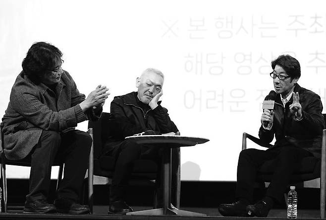 이를테면, 영화의 리듬감을 생성하는 컬러 장면을 기습적으로 삽입한 연출 의도가 무엇인지, 3년간 서장과 종장을 포함하여 총 9장의 이야기를 나눠 찍으면서 새로운 챕터를 써 내려갈 때 어떤 리듬으로 이어갈지 고민했던 시간을 되짚어보거나 영화 전체의 묘한 운율을 형성하는 듯한 아름다운 인서트 샷들을 어느 위치에 어떻게 넣고 어떤 박자로 조절했는지 등과 같은 선배 감독에게 엿들을 수 있는 '작업 비밀'들을 물어보았는데요.