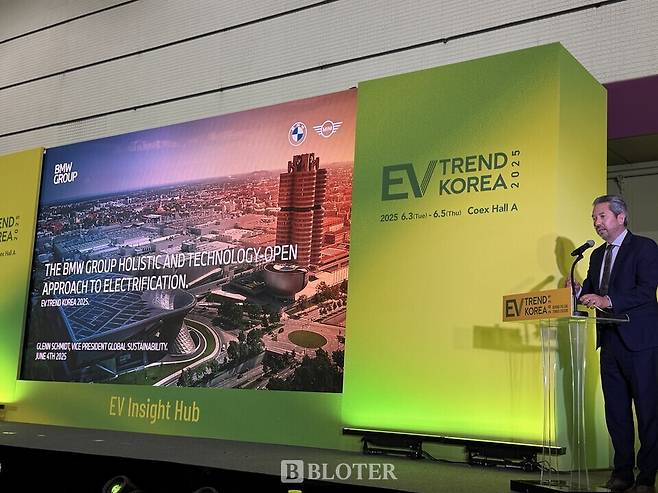 하지만 EV트렌드코리아를 공동 주관하는 코엑스, 한국배터리산업협회, 한국자동차환경협회 등은 ‘EV어워즈2025’ ‘EV360컨퍼런스’ 등 다양한 부대행사를 마련했다. 4일 오후 코엑스 A홀에서 열린 EV360컨퍼런스에는 BMW 독일 본사 글로벌지속가능성본부의 글렌 슈미트 부사장과 박강석 볼보트럭코리아 대표이사가 참석해 눈길을 끌었다.