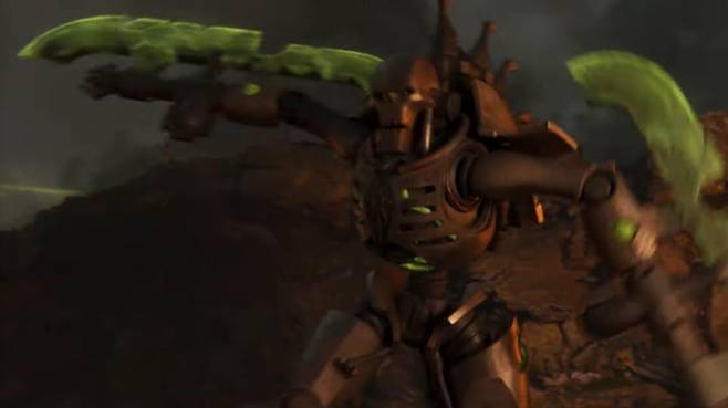 영상에서는 이전 작품에 스카웃 마린 서전트로 등장했던 '사이러스'가 화자로 등장한다. 던 오브 워 시리즈에서 스페이스 마린 팩션의 주인공이라 할 수 있는 '블러드 레이븐' 챕터에 대한 소개로 시작된 영상은 기계 팔을 다루는 '아뎁투스 메카니쿠스', '네크론', 그리고 '그린스킨'을 비추면서 본작의 최초 등장 세력이 4개 팩션으로 시작됨을 알려준다. 전작인 '던 오브 워 3'의 경우 스페이스마린과 그린스킨, 엘다가 최초 세력으로 등장했던 바 있다.