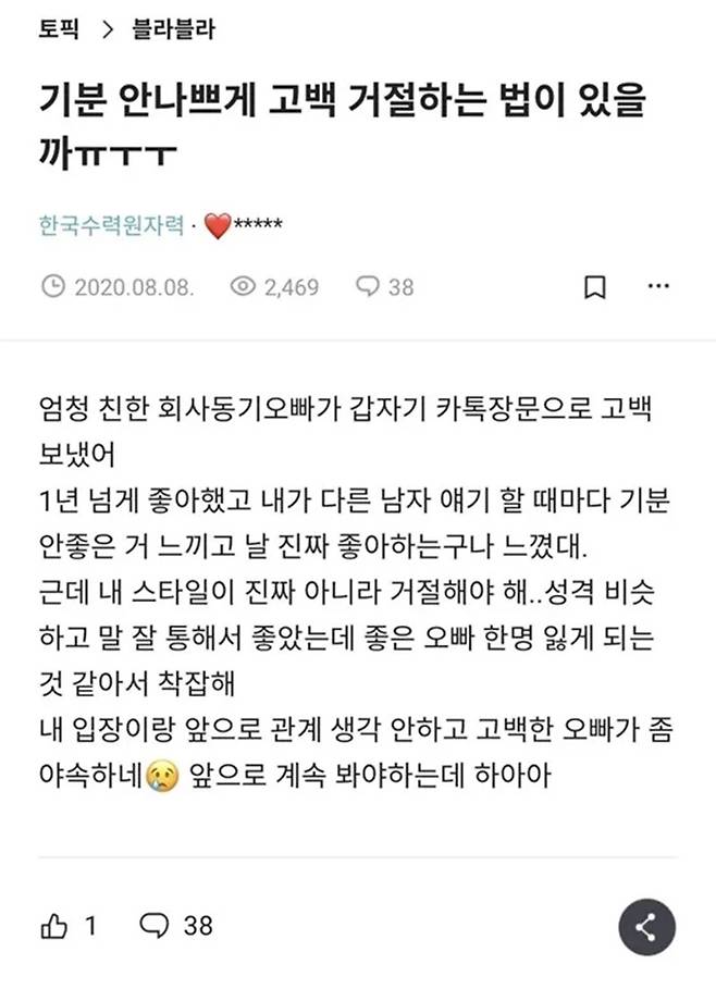 참고: 기분 안나쁘게 고백 거절하는 법이 있을까ㅠㅜㅜ, 블라인드
