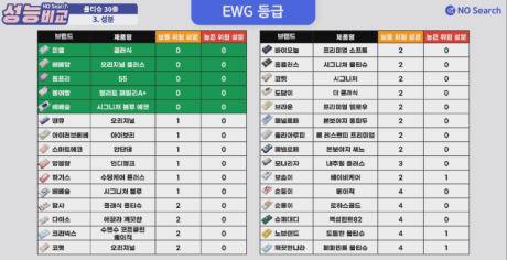 미엘, 베베앙, 올프리, 붕어빵, 베베숲 에코 5개 제품은보통 위험 이상의 성분을 포함하지 않고, 모든 성분이 EWG 그린 등급에 해당되었습니다.