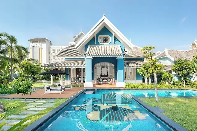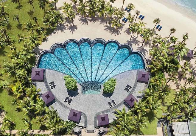 ๊ฑด์ถ๊ฐ ๋น ๋ฒค์ฌ๋ฆฌ(Bill Bensley)๊ฐ ์ค๊ณํ 19์ธ๊ธฐ ํ๋์ค ๋ํ์ ๋ชจํฐ๋ธ๋ก ํ ๋ฆฌ์กฐํธ! ๋ชจ์์ดํฌ ํ์ผ๋ก ์ฅ์๋ ์กฐ๊ฐ ๋ชจ์์ ์์์ฅ๊ณผ ์ ์ฉ ํด๋ณ์ด ์ด๊ณณ๋ง์ ํน๋ณํจ์ ๋ํด์ค๋๋ค.