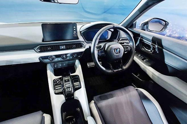 내부 컬러는 화이트와 네이비 투톤으로 구성되며, 도어 패널, 대시보드, 콘솔 상단부 등 곳곳에 컬러 포인트가 적용되어 감각적인 분위기를 자아낸다. 혼다의 젊은 감성과 90년대 쿠페의 향수를 동시에 만족시키는 구성이다.