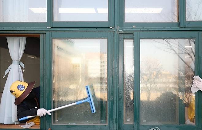 3. 희석한 세제를 분무기에 담아 유리에 분사한 뒤 마른 수건으로 닦아낸다.