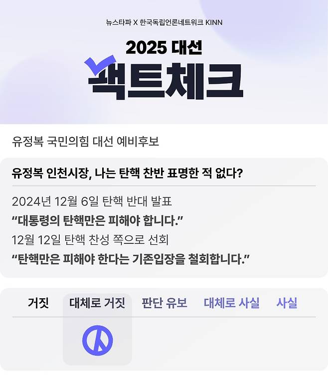 [팩트체크] 유정복 인천시장, 탄핵 찬반 표명한 적 없다?