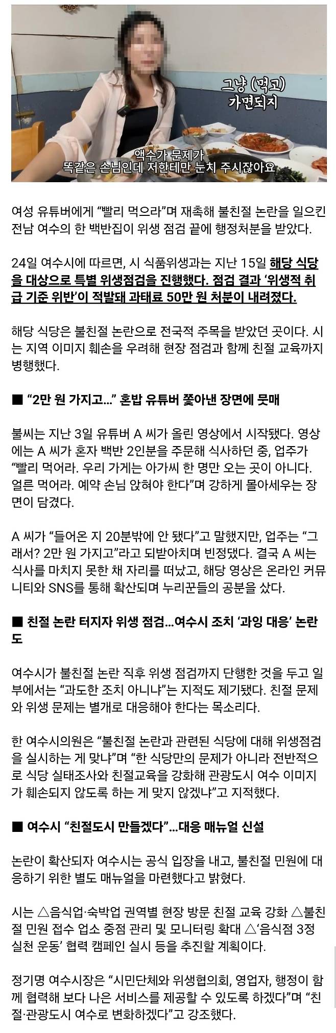 과태료 50만원 + 친절교육 까지