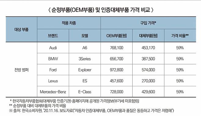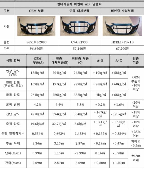 그러나 자동차 제조사들은 자사 순정부품이 아닌 모든 비순정부품을 안전하지 못하고 사용에 부적합하다는 내용으로 표시했지만 (규격품ㆍ인증대체부품 등을 포함한) 모든 비순정부품의 품질이나 성능이 떨어진다는 점을 객관적으로 실증하지 못했다는 것이 공정위 설명입니다.