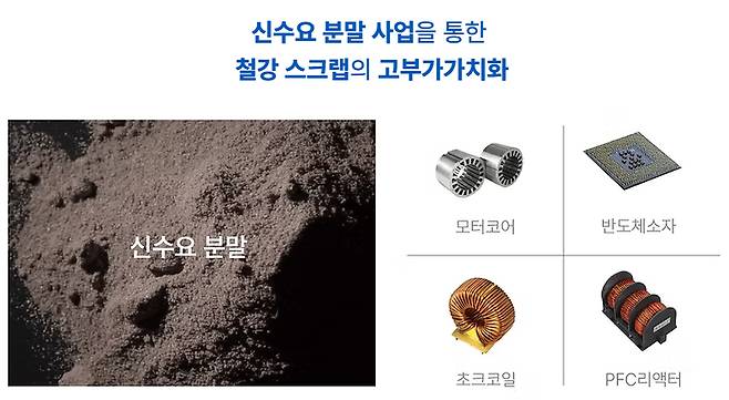 철강 생산공정 내에서 발생하는 부산물을 재활용하기 때문에 기존 자성분말 대비 원가 및 가공비가 저렴하고, 종전의 생산방식 대비 효율 향상이 가능하며 미래 모빌리티 및 동력산업의 고부가가치 창출이 가능할 것이란 전망이다.