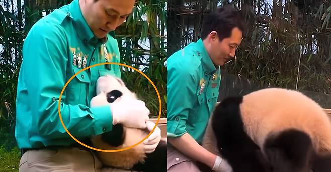 그러나 송영관 사육사 생일날 가장 훈훈한 장면은 '송후이' 후이바오와 보여준 모습이었습니다. 말괄량이이자 장난꾸러기인 막둥이 후이바오는 마치 이날 송바오 생일을 알기라도 한듯 정말 놀라운 모습을 보여줬다고 하는데요. 할부지의 생일을 축하하기라도 한듯 장난보다 따뜻한 애교를 부린 후이바오의 모습에 왠지 모를 뭉클함이 전달되기도 합니다.
