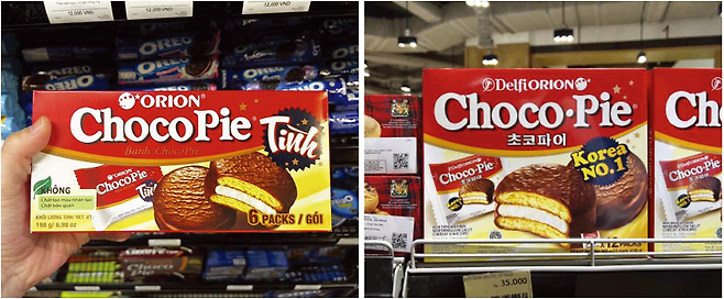 경쟁사(롯데, 크라운)들은 오리온 제품의 패키지 디자인을 따라 했다. 오리온 초코파이가 파란색을 사용할 때엔 롯데, 크라운도 파란색을 사용했고, 이후 오리온이 빨간색으로 바꾸자 모두 빨간색으로 리뉴얼했다.