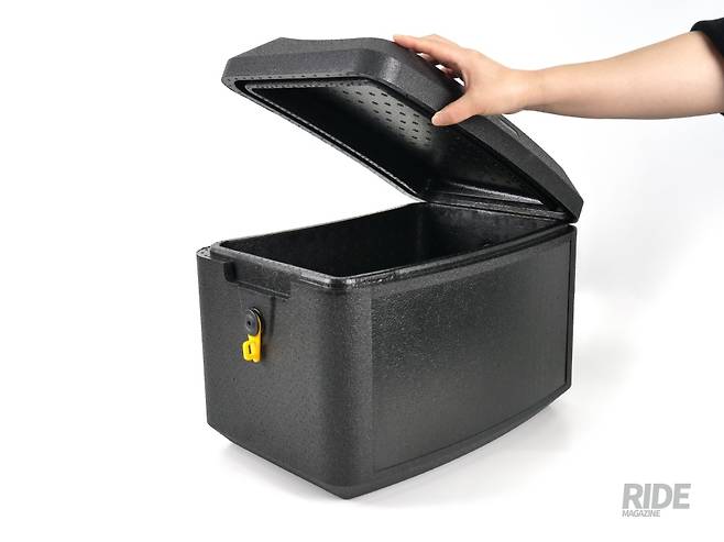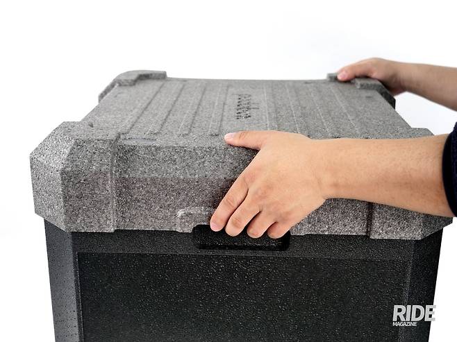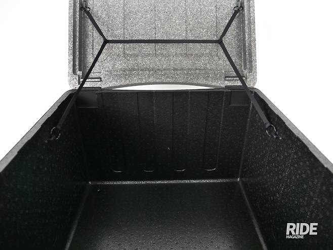 제품을 자세히 들여다보면 878g으로 매우 가볍고 단건이나 간단한 배달 정도에는 충분히 대응할 수 있는 22.4리터의 넉넉한 내부 공간이 mini라는 이름과는 달리 꽤나 쓸모 있어 보인다. 마감이나 디테일에서 매우 꼼꼼하게 신경 쓴 부분들을 확인할 수 있는데 EPP Plus+라는 소재의 특성상 보온성이 뛰어난 것은 기본으로 치더라도 덮개가 덮이는 부분의 꼼꼼한 밀폐력이라던지 내부의 마감, 사용이 편리한 손잡이 홈, 세련되게 새겨진 음각 로고까지 딱히 단점이 보이지는 않는다. 큰 박스 앞에 추가로 장착하는 용도 말고도 도보나 자전거 등으로 배달하는 라이더들까지 충분히 커버할 수 있을 것으로 보인다.