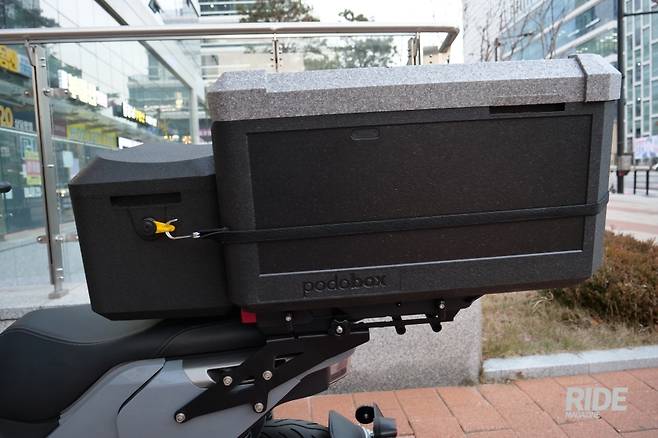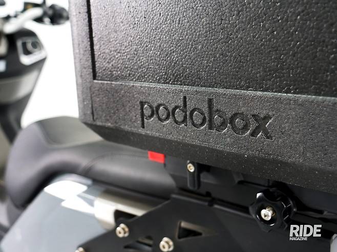 처음 제품을 마주하면 "아니 어떻게 이런 소재로 이런 탑박스를 만들 생각을 했을까?" 하는 생각이 가장 먼저 든다. 지금이야 EPP 소재로 만든 탑박스를 도로에서 쉽게 볼 수 있지만 포도박스의 등장 이전에는 플라스틱으로 만들어지거나 금속 소재로 외부를 마무리한 탑박스들이 거의 대부분이었기 때문이다. 오랜 시간 모터사이클 시장과 액세서리 시장을 지켜본 입장에서 이 제품의 등장은 나름 탑박스라는 서드파티 시장에서 발상의 전환으로 시장의 패러다임을 바꾸는 터닝포인트 같은 제품이라고 평가하고 싶다.