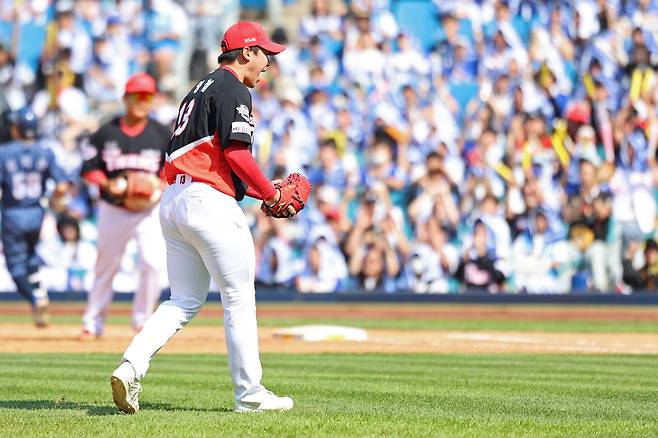 이날은 달랐다. 1회 말 2사 후 르윈 디아즈에게 투런 홈런을 맞을 때만 하더라도 부진이 이어지는 듯했다. 그러나 곧이어 김영웅을 10구 승부 끝에 삼진으로 잡은 다음부터는 삼성 타자들을 압도하는 투구 내용을 선보였다.