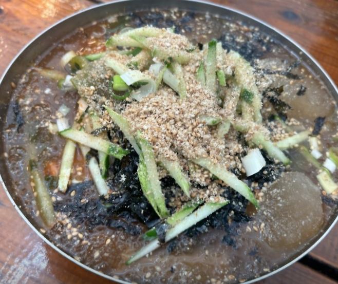 ์ง์ ๋ง๋ ๋ฌต์ ๋ฌ๋ฟ ๋ฃ์ ๋ฌต์ฌ๋ฐ(๋ฌต๋ฐฅ)์ ์ฑ์์ ํด์ฐ๋ฌผ ์ก์๊ฐ ์ด์ฐ๋ฌ์ ธ ์์ํ๊ณ ๊น์ ๊ฐ์น ๋ง์ ์๋ํฉ๋๋ค.