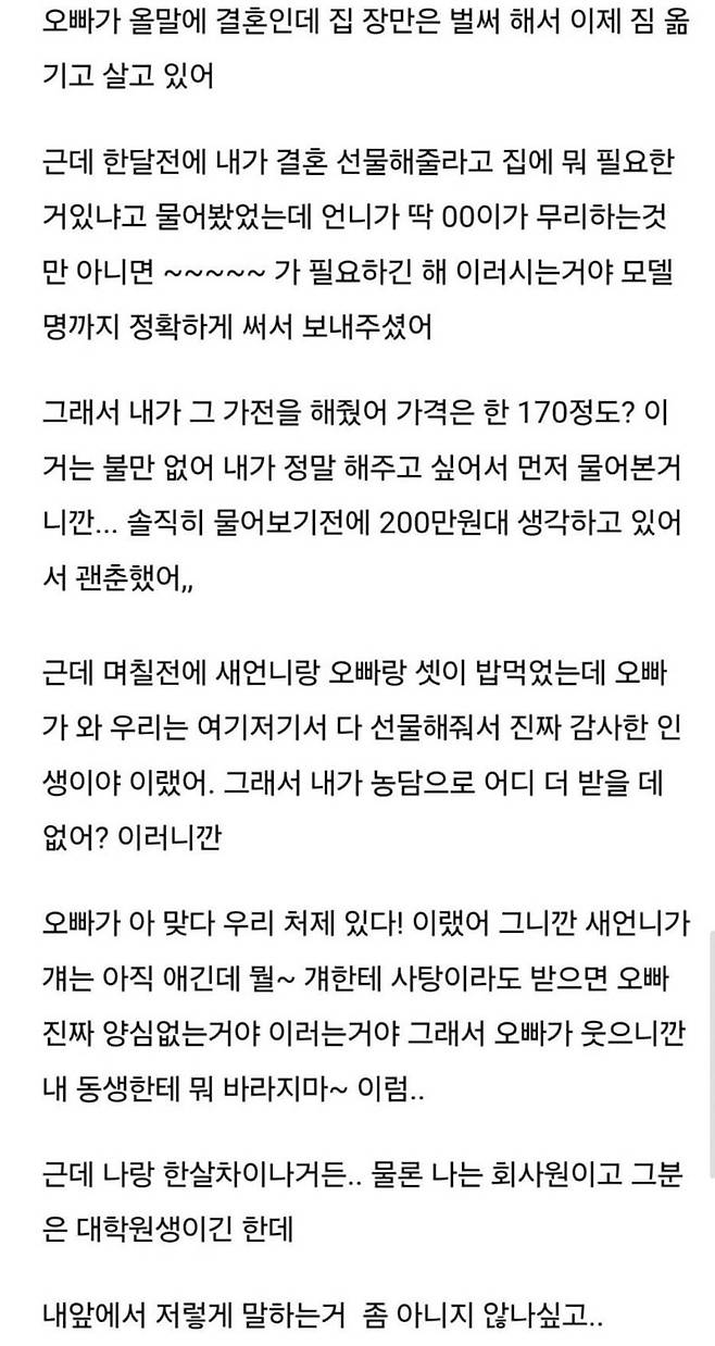 곧 결혼하는 오빠한테 결혼 선물하고 기분 상한 여자