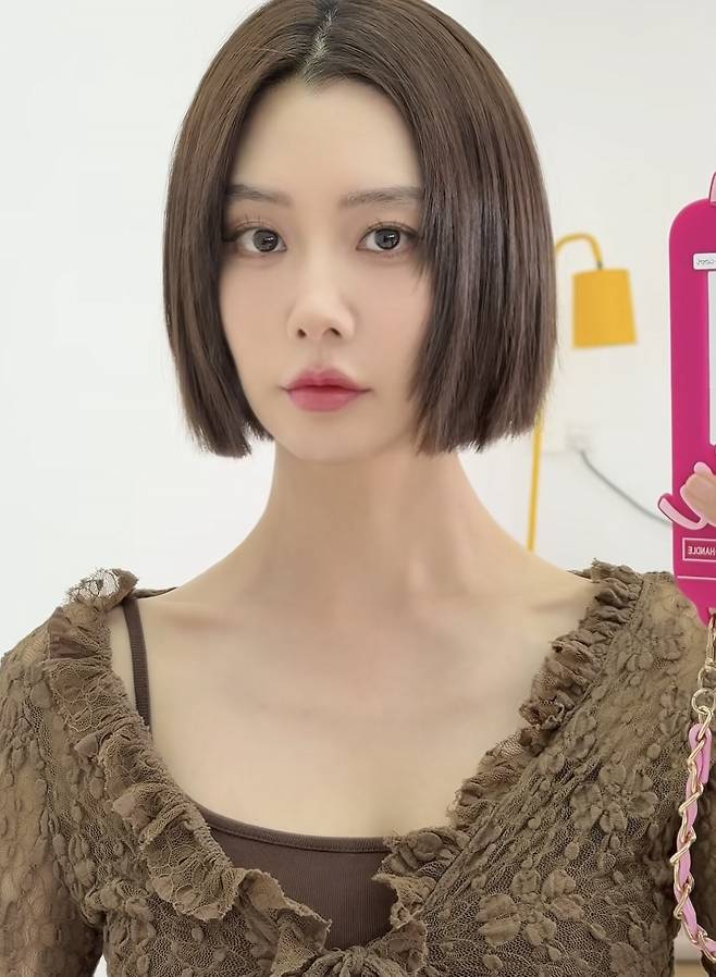 짧은 단발 헤어와 다크립 포인트가 더해져 카리스마를 폭발시켰습니다.