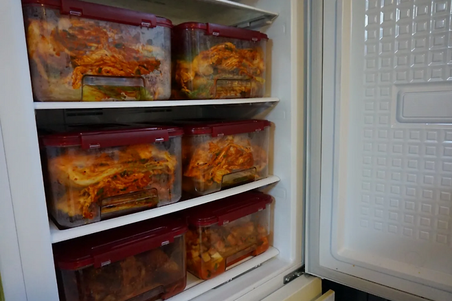 냄새가 심한 김치는 유리 밀폐용기나 진공 용기를 사용하는 것이 권장됩니다.