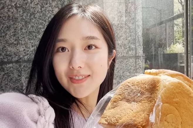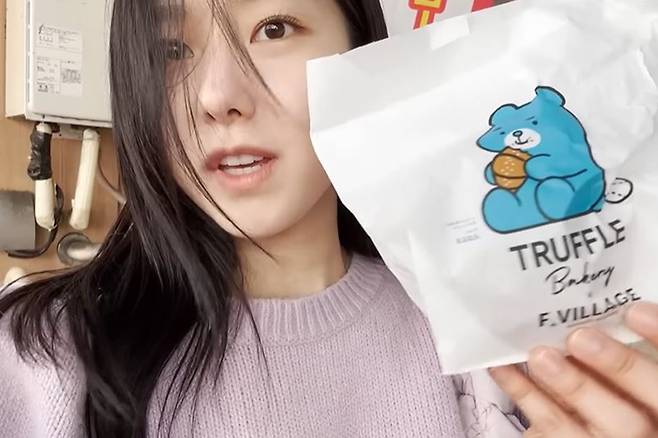 영상에서 그녀는 맛있는 빵을 맛보기 위해