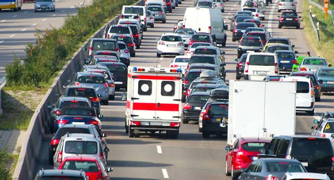 독일 도로교통법은 한 방향 최소 2차로 이상인 고속도로와 시외 다차로 도로에서 차량이 정체하거나 시속 20km 안팎 ‘보행 속도’로 떨어지는 즉시, 운전자들이 구조차선을 형성해야 한다고 규정한다. 여기서 중요한 것은 사이렌이 들리기 ‘이후’가 아니라, 교통 흐름이 느려지는 ‘그 순간부터’ 미리 비상 통로를 만들어 둬야 한다는 점이다.