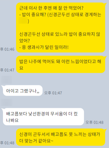 2. ๋ฐฅ์ ์ ๋จน๋ ์ด์ โ ์๊ณผ ์ฌ๊ฐ ๋ฌ๋ฆฐ ์์ ์ด ๋ณด์ฅ๋์ง ์๋ค๊ณ ๋๊ปด์ ธ์ ๋ฐฅ์ด ์ค์ํ์ง ์์์, ์กฐ์ฉํด์ง๋ฉด ์ค์ค๋ก ๋จน์ ์๊ฐ.