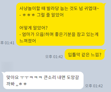 ๊ณ ์์ด๋ฅผ ๊ณต๊ฒฉํ๋ ค๋ ๋ฌด์ธ๊ฐ๋ ์๊ณ ์๋ฌด ์ผ๋ ์ผ์ด๋์ง ์์์ ์กฐ๊ธ ๊ด์ฐฎ์์ก์ง๋ง, ์์ง ๋ง์์ ์์ ํ ๋ด๋ ค๋์ ์๋ ์๋ค๊ณ ๋๋ตํด ์ฃผ์์ด์.