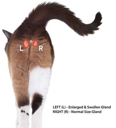 고양이 항문낭이란 고양이 항문 주변에 있는 분비선을 말합니다. 항문 주변 양쪽으로 4시, 8시 방향에 각각 하나씩 위치한 두개의 작은 주머니인데요, 작은 콩인 녹두 정도의 크기를 가지고 있습니다.