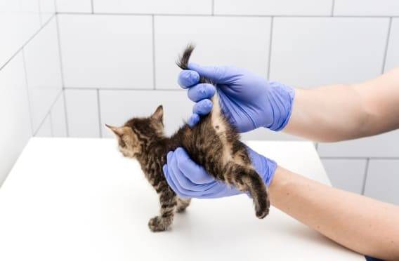 먼저 고양이를 안고 양쪽 뒷 다리를 들어 올립니다. 그리고 손날을 세워 부드럽게 허벅지 부분을 꼬리 쪽을 향해서 쓸어 올립니다. 이러면 신기하게도 항문 부분에서 뭔가 쑥 나오는 것을 발견할 수 있어요. 이렇게 해서 배출되지 않는 경우에는 자연스럽게 이미 다 배출되었다고 보셔도 됩니다.