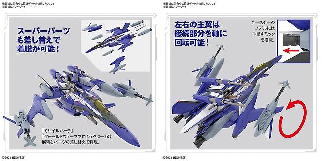 -슈퍼 파츠는 교환 부품으로 착탈이 가능합니다. 여기에 [미사일 해치], [폴드웨이브 프로젝터]의 전개 역시 부품 교환으로 재현했습니다.