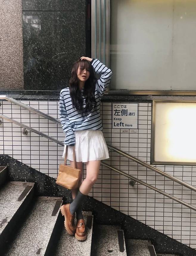 숏스커트를 활용해서 다양한 코디를 많이 선보이고 있다!