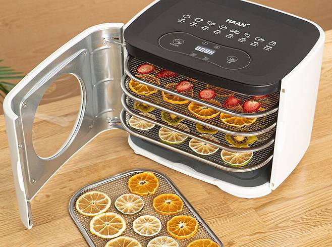 식품 건조를 위한 금속망 트레이는 총 5개가 제공되는데, 좌우 내부에 돌출된 턱에 걸쳐서 밀어 넣기만 하면 된다. 식재료가 건조된 후 꺼낼 때에는 트레이가 뜨거우니 식을 때까지 기다리거나 장갑 등을 착용하고 꺼내면 된다.